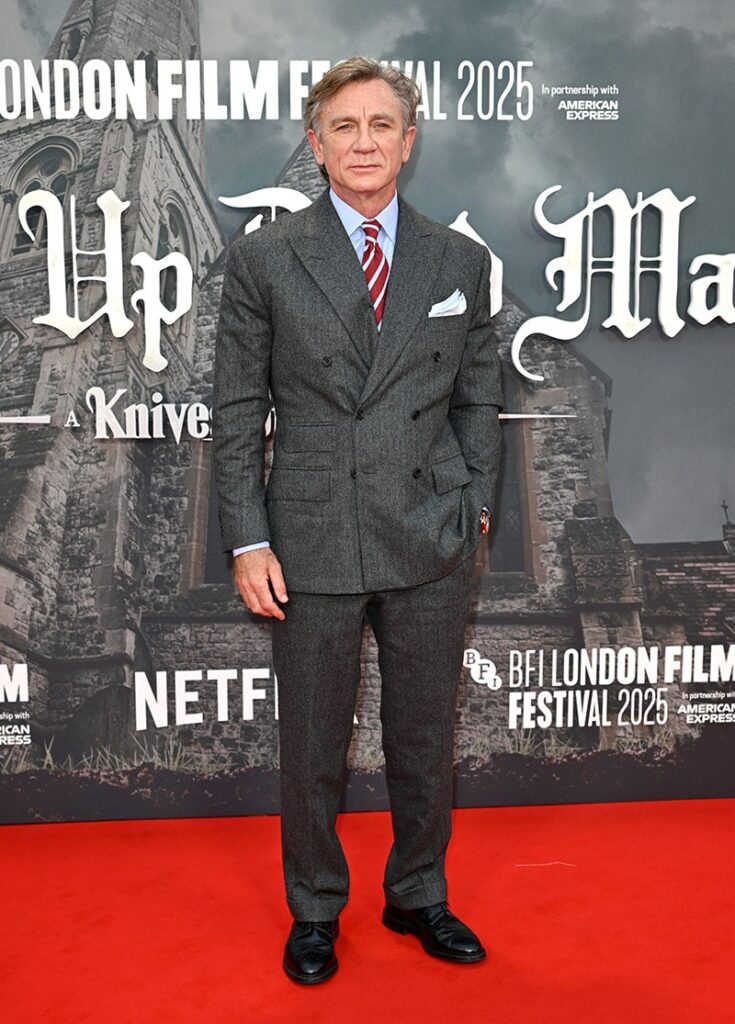 Daniel Craig, reprising his iconic detective role, appeared polished and relaxed in a tailored dark suit, while Josh Brolin added his signature rugged charm to the lineup.