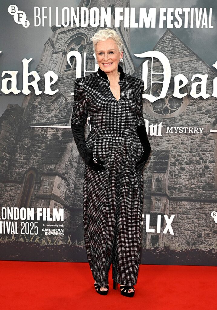 Glenn Close radiated poise in a chic monochrome look that commanded attention.